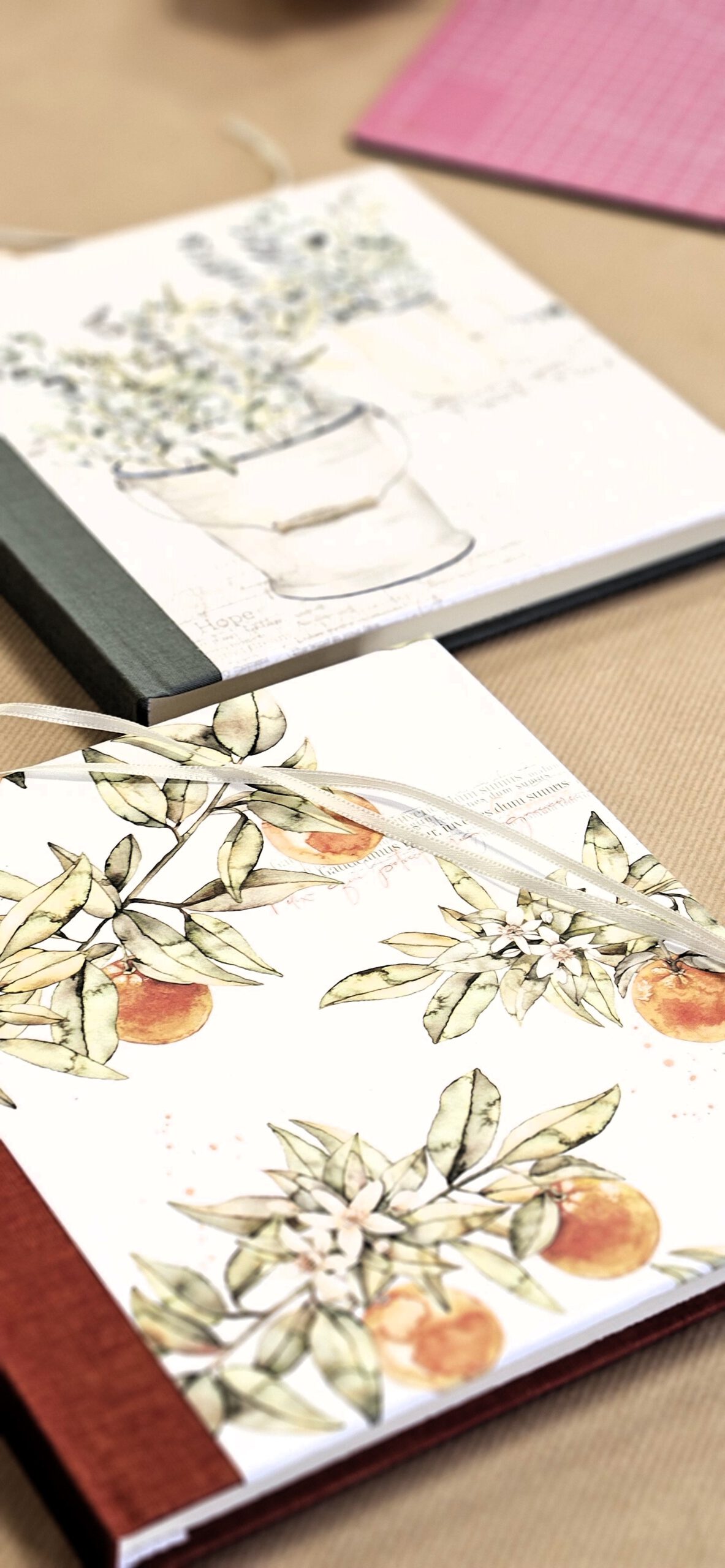 Buchbinden mit Buchbinderleinen /- Leim und außergewöhnlichen Papieren mit wunderschönen Motiven